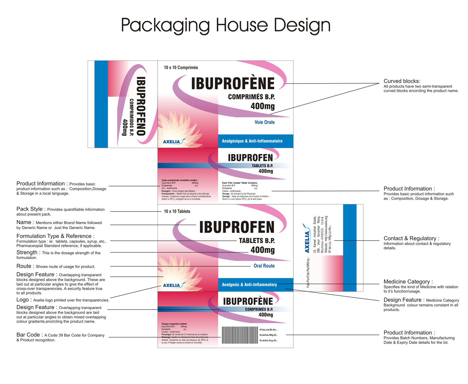 A brief explanation of our "house design" for our generic & branded generic products is given with the help of an illustrative example below. This we hope, will help our customers differentiate between "original" Axelia products and imitations which may be found in the market. |